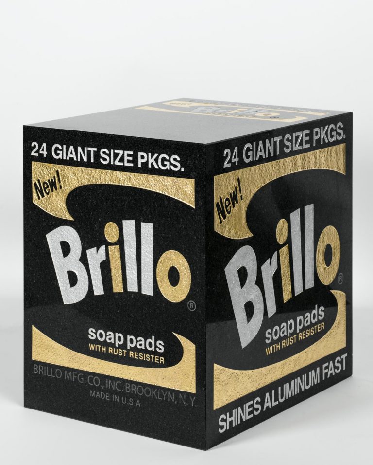 Abrasive blasting, gold and silver leaf on black granite