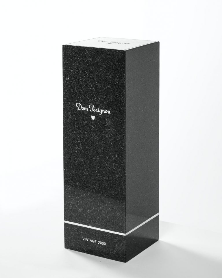 Death of Dom Pérignon 2012 Abrasive blasting, silver leaf on black granite 17 x 50 x17 cm Edition of 3