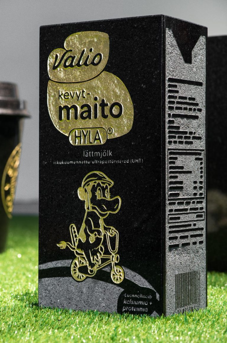 Death of Valio 2015 Abrasive blasting, gold leaf and silver on black granite 20 x 40 x 12,5 cm Edition of 3